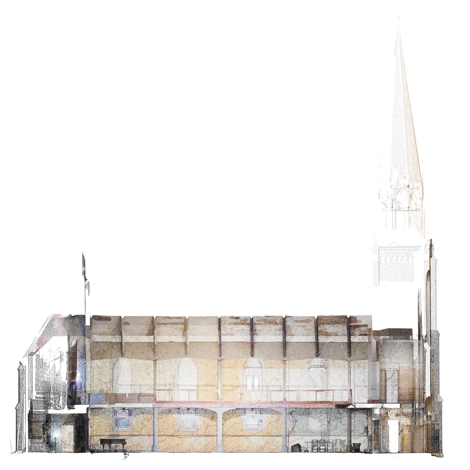 EIPC recently undertook a unique scanning project at the historic Grace to Grace Church, now known as the Assemble Sound space, in Detroit. This detailed documentation was specifically carried out to support the work of fellow Kevin Moultrie Daye, providing him with a comprehensive digital record of a space rich in history and architectural character. The initiative aimed to capture the essence of this building, preserving its intricate details and atmosphere through advanced digital means.