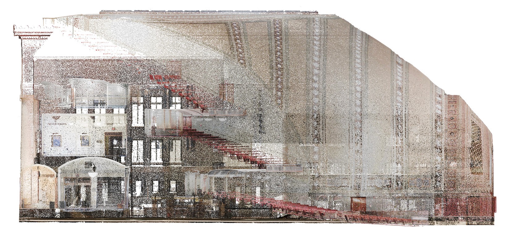 The scanning process focused on key elements of Hill Auditorium’s structure, including the organ pipes behind the stage, the organ lift concealed in the floor, and the auditorium’s expansive interior. In addition to the main performance space, EIPC also captured the catwalks in the skylight of the ceiling and the basement and tunnels below, ensuring a comprehensive digital model that includes both visible and hidden architectural features.