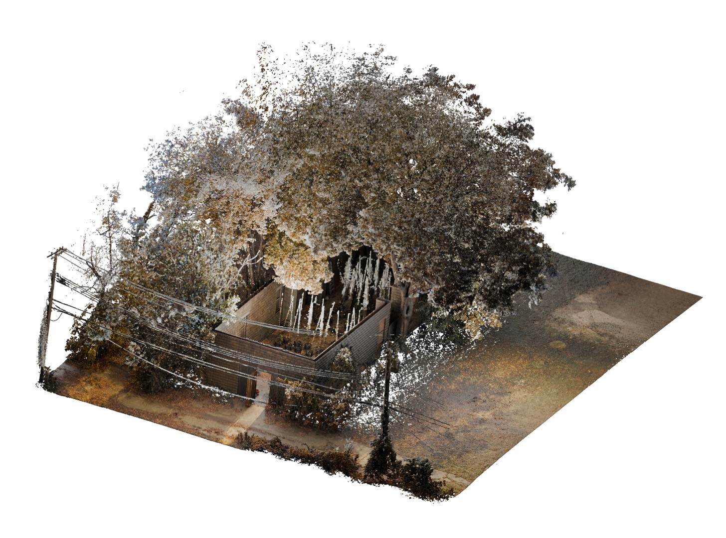 The Mt. Elliott Open Air Research Facility is a garden and studio where architecture and ecology meet. Central to its development is the use of LiDAR scanning and drone photogrammetry, which provide precise spatial documentation to support design and interdisciplinary collaboration. Initially used to guide tree placement within the structure, this data ensured optimal access to light, ventilation, and circulation.