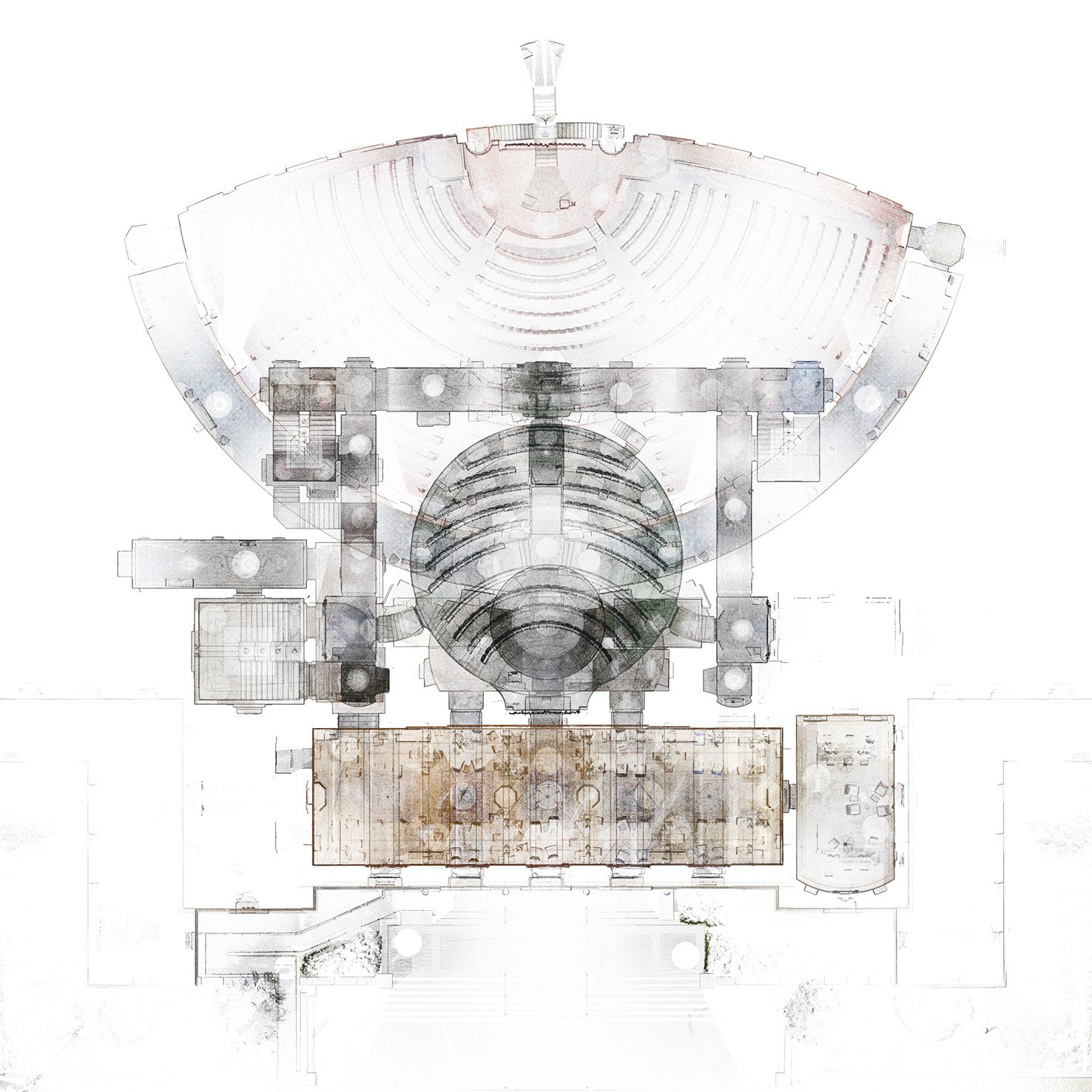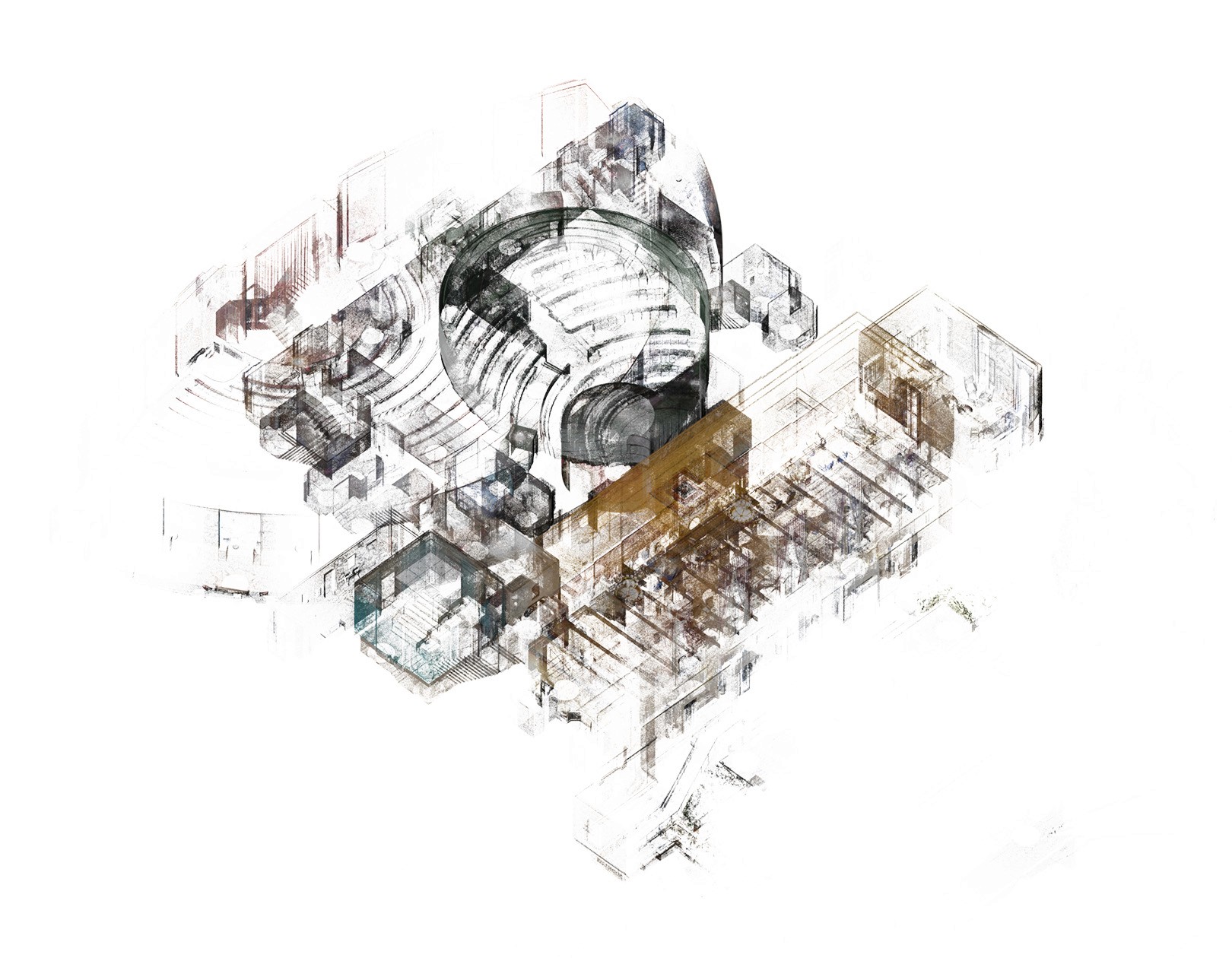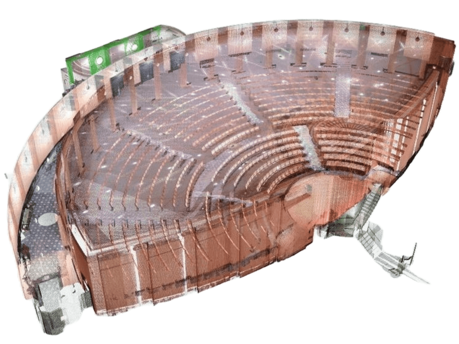 The project presented unique challenges, given the building’s complex design. EIPC’s team scanned key areas including the auditorium, the dressing room beneath the stage, and the amphitheater at the heart of the building. We also captured several conference rooms surrounding the central lecture and entertainment spaces, ensuring a complete and detailed digital model.